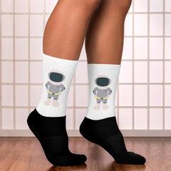 These socks are extra comfortable thanks to their cushioned bottom. The foot is black with artwork printed along the leg with crisp, bold colors that won't fade.